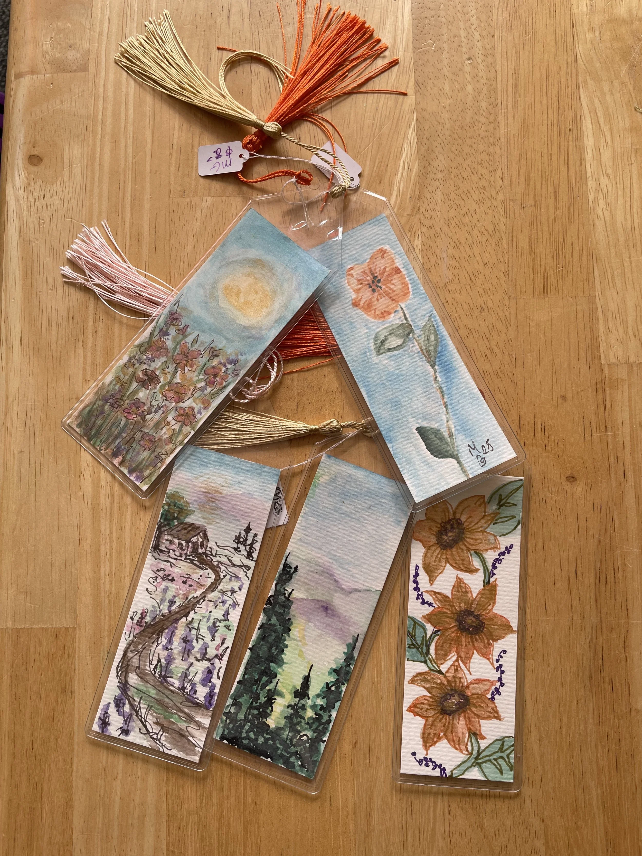 Enjoy a couple hours of tiny art and relaxation creating bookmarks using watercolor or alcohol ink markers. Demonstration, guidance and supplies to make a few bookmarks to keep or giveaway. Bookmarks come with plastic sleeves and tassels.